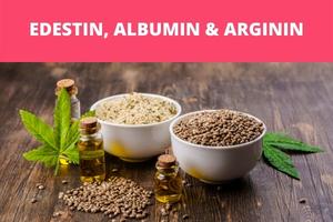 Die Hauptproteine in Hanfsamen heißen Edestin und Albumin. Diese Speicherproteine enthalten alle essenziellen Aminosäuren. Speicherproteine haben ihren Namen von ihrer Fähigkeit, Nährstoffe für das Wachstum zu speichern. Auch weist Hanfsamen einen hohen Gehalt an der Aminosäure Arginin auf.